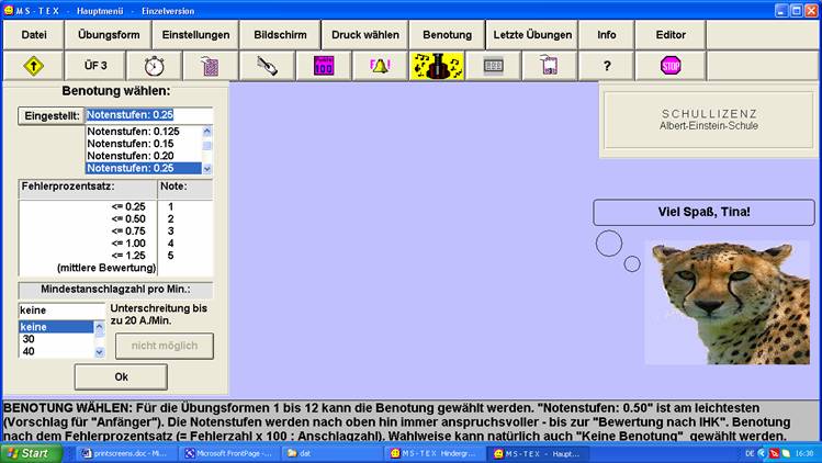 Vor Beginn jeder Übung kann die Benotung verändert werden.
